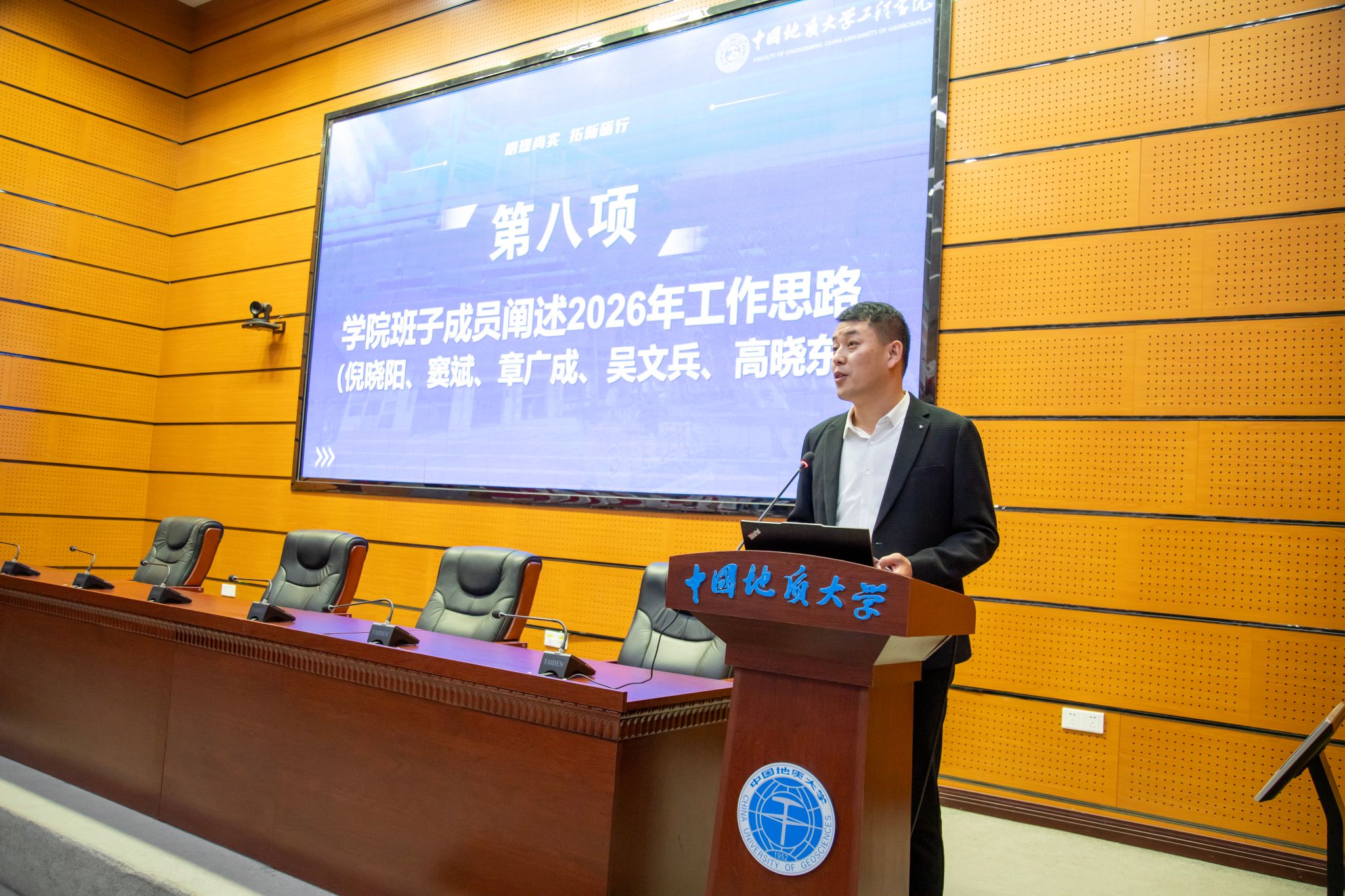 (通讯员 方长亮)2026年1月8日下午,日本av中文字幕 第六届教职工大会第二次会议暨第六届工会会员大会第二次会议在南望山校区东区教学综合楼A0113会议室隆重召开。党委书记杨昌锐同志主持大会,全院教职工齐聚一堂,围绕“明理尚实 拓新砺行——为建设地质工程与人居安全领域特色鲜明、享誉国际的一流研究型学院而接续奋斗”主题共绘发展蓝图,圆满完成各项议程。