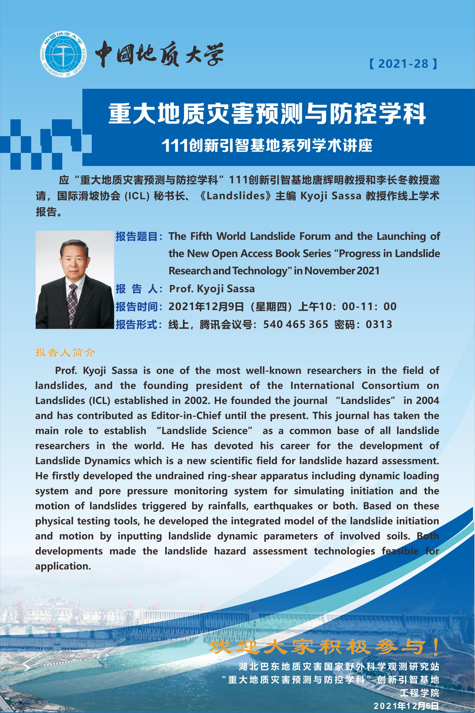 重大地质灾害预测与防控学科---111创新引智基地系列学术讲座(28)