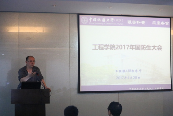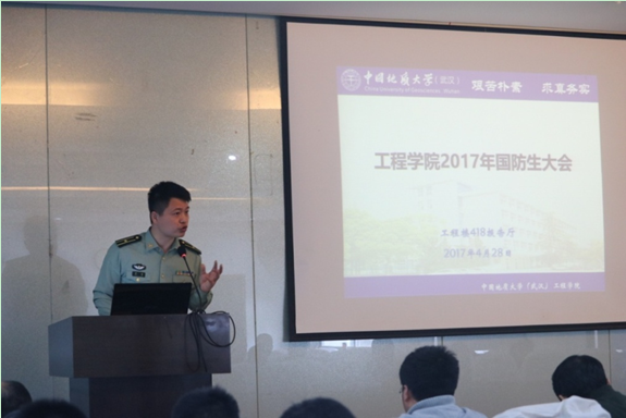 2017年国防生大会在工程楼418报告厅召开。院党委副书记江广长,校国防办主任李凛,驻校选培办干事谭皓,辅导员丁继国、文新、王俊以及学院全体国防生参加了大会。