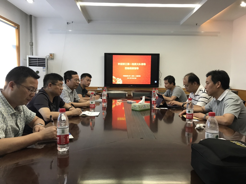 7月23日,浙江省第一地质大队副队长张帆一行4人来学院交流,院党委书记陈飞、副书记江广长,勘察与基础工程系马保松教授,校大学生创新创业教育中心张华等参加了座谈交流。