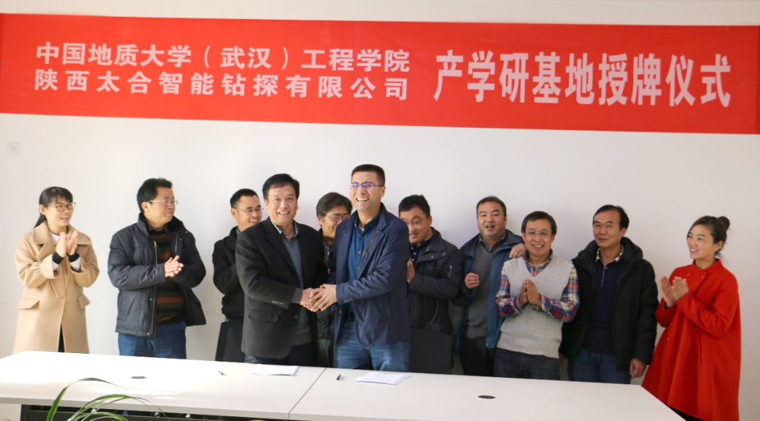 (通讯员:胡郁乐)2017年12月6日上午,陕西太合智能钻探有限公司与日本av中文字幕 (武汉)日本av中文字幕 在陕西西安签署了产学研实践基地合作协议。陕西太合智能成立于2013年,立足于煤矿安全生产,是一家集装备研发设计、生产加工与技术服务为一体的高新技术企业。公司主要从事矿用钻探设备及配套钻具、仪器仪表、金属与非金属材料的研发、生产及销售。公司一直致力于产品的创新开发。大扭矩定向钻机,高品质异形截面钻杆、智能钻具以及无线MWD、泥浆MWD等产品在行业中竞争优势明显,为矿山开采提供高标准钻探技术与专业化服务。
