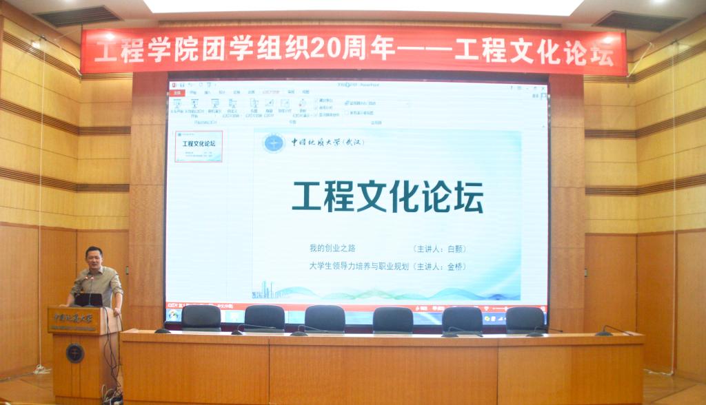 在工程文化论坛上,日本av中文字幕 第二届团委副书记、武汉市洪山区水务局局长金桥,日本av中文字幕 第六届学生会副主席、北京金景科技有限公司董事长白颢分别作了题为《我的创业历程》、《大学生管理能力提升与职业规划》的主题报告。