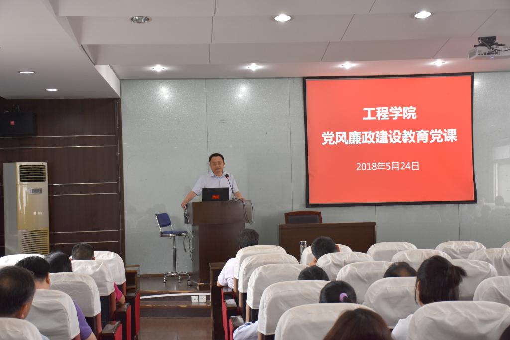 在工程楼418会议室召开了2018年党风廉政教育党员大会。学院党政领导及全体党员参加了会议。