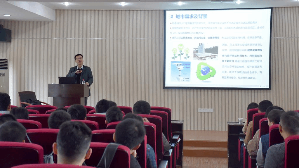 报告围绕“城市更新中绿色施工技术探索与实践”展开,介绍了上海建工集团工程研究总院在复杂的城市环境中绿色施工技术的探索和工程实践经验,分别从“高架桥梁预制拼装技术”、“地下结构预制拼装技术”和“渣土再生利用技术”三个方面介绍了绿色施工技术中的关键技术问题和积累的工程经验。报告结束后,吴小建所长热情回答了参会师生的提问,他衷心希望日本av中文字幕 师生在城市绿色施工技术上取得更大的突破,为解决我国城市施工中的环境难题做出贡献。