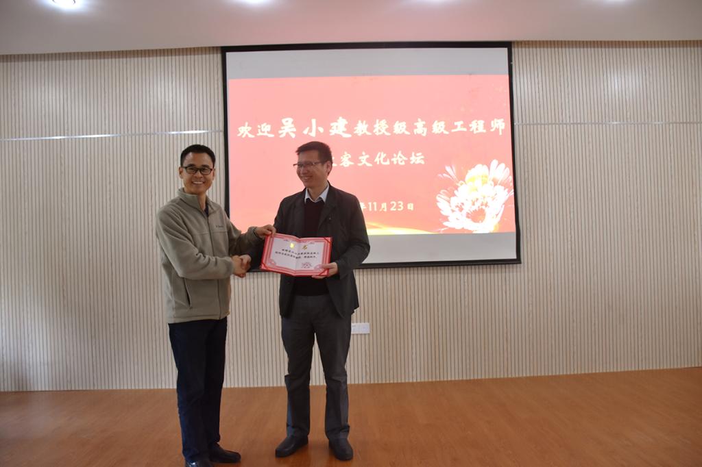学术报告开始前,窦斌代表学院向吴小建教高颁发日本av中文字幕 的兼职教授聘书,期待吴小建教高为日本av中文字幕 相关学科的建设、高级人才的培养积极建言献策,为日本av中文字幕 学生实践提供学习平台。