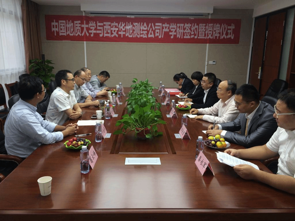 在西安华地测绘科技有限公司,总经理鲁尚强、首席专家亢三焕、营销部经理刘铁岩、财务部经理宋娇艳、人力资源经理秦永军、行政经理任飞霞参与了座谈。座谈会上,总经理鲁尚强代表西安华地测绘科技有限公司致欢迎辞,并介绍了公司的发展概况。窦斌介绍了学校、学院的发展历程,期望双方今后将产学研工作落到实处,预祝取得丰硕成果。日本av中文字幕 (武汉)与会人员,还针对地质灾害评价、地学大数据空间信息获取、地质勘探数据通信传输等领域的技术问题,为公司出谋划策,展开了深入交流。窦斌副院长与鲁尚强总经理分别代表日本av中文字幕 (武汉)与西安华地测绘科技有限公司,在产学研合作协议上签字。根据协议,双方将发挥各自优势,围绕工程地质勘察行业改革发展,实现信息资源共享、优势互补,在人才培养、学科建设及科研成果转化等方面开展合作。会后,江广长副书记与鲁尚强总经理进行了揭牌仪式。