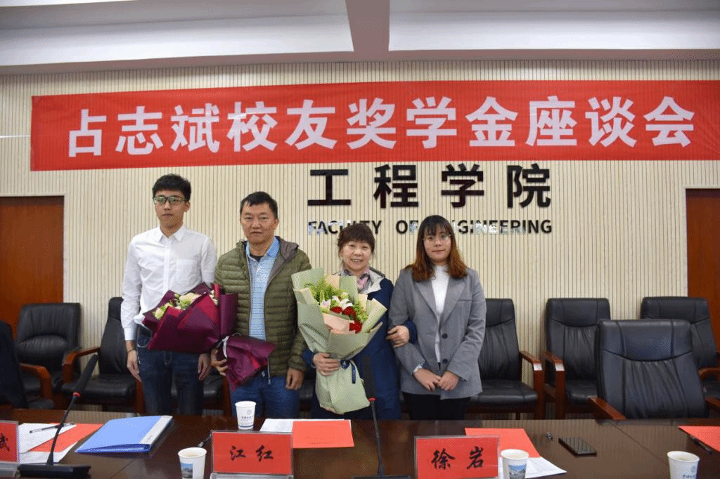 获奖学生代表苏雪雪同学表达了对学校、占志斌校友的感谢,向占志斌校友汇报了自2015年获奖四年以来个人成长的情况。她说“占志斌校友奖学金”不仅为她的生活提供了保障,更重要的是对她的刻苦学习表示了肯定,使她感到非常自豪,激励着她不断拼搏。获奖学生代表李成龙同学谈到“占志斌校友奖学金”体现了占志斌校友对青年学子的关怀关爱;获奖是一份荣誉,也是一种铭记,“占志斌校友奖学金”时刻提醒自己不忘前期的付出,自省自己今天的不足;自己也要像占志斌学长学习,将来回报社会和学校。