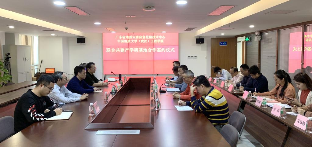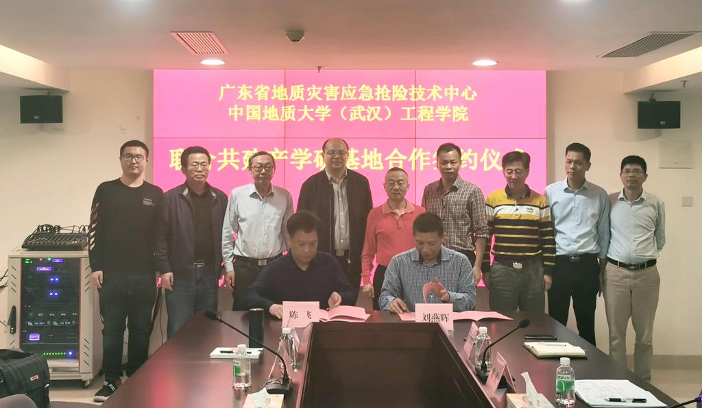 陈飞、刘燕辉签署产学研基地合作协议。根据协议,广东省地质灾害应急抢险技术中心作为日本av中文字幕 (武汉)日本av中文字幕 的产学研基地,双方将定期就人才的培训、技术的创新、引进与推广、联合攻关、学生实习等方面开展协商研究。
