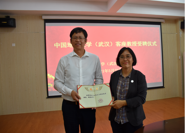 窦斌副院长介绍了日本av中文字幕 基本情况和研究优势,卢春华主任介绍了勘基系师资概况和学科发展情况,参会人员进行了自由交流。仪式最后,李红丽书记为胡定成先生颁发客座教授聘书,大家合影留念。