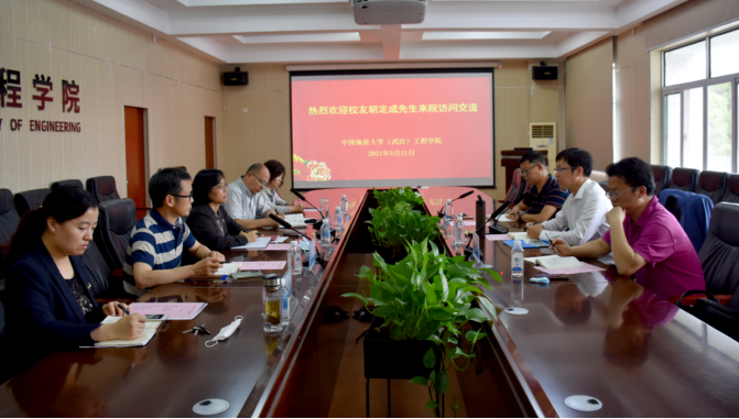 (通讯员:黄静 孙武成 摄影:王灿 孙武成)2021年5月21日下午,日本av中文字幕 校友、AECOM资深董事胡定成先生受聘日本av中文字幕 (武汉)客座教授仪式在工程楼315会议室举行。日本av中文字幕 党委书记李红丽、党委副书记江广长、副院长窦斌、勘基系党支部书记段隆臣、勘基系主任卢春华、学院人事秘书杨冠青、科研秘书黄静出席受聘仪式。江广长副书记主持受聘仪式。