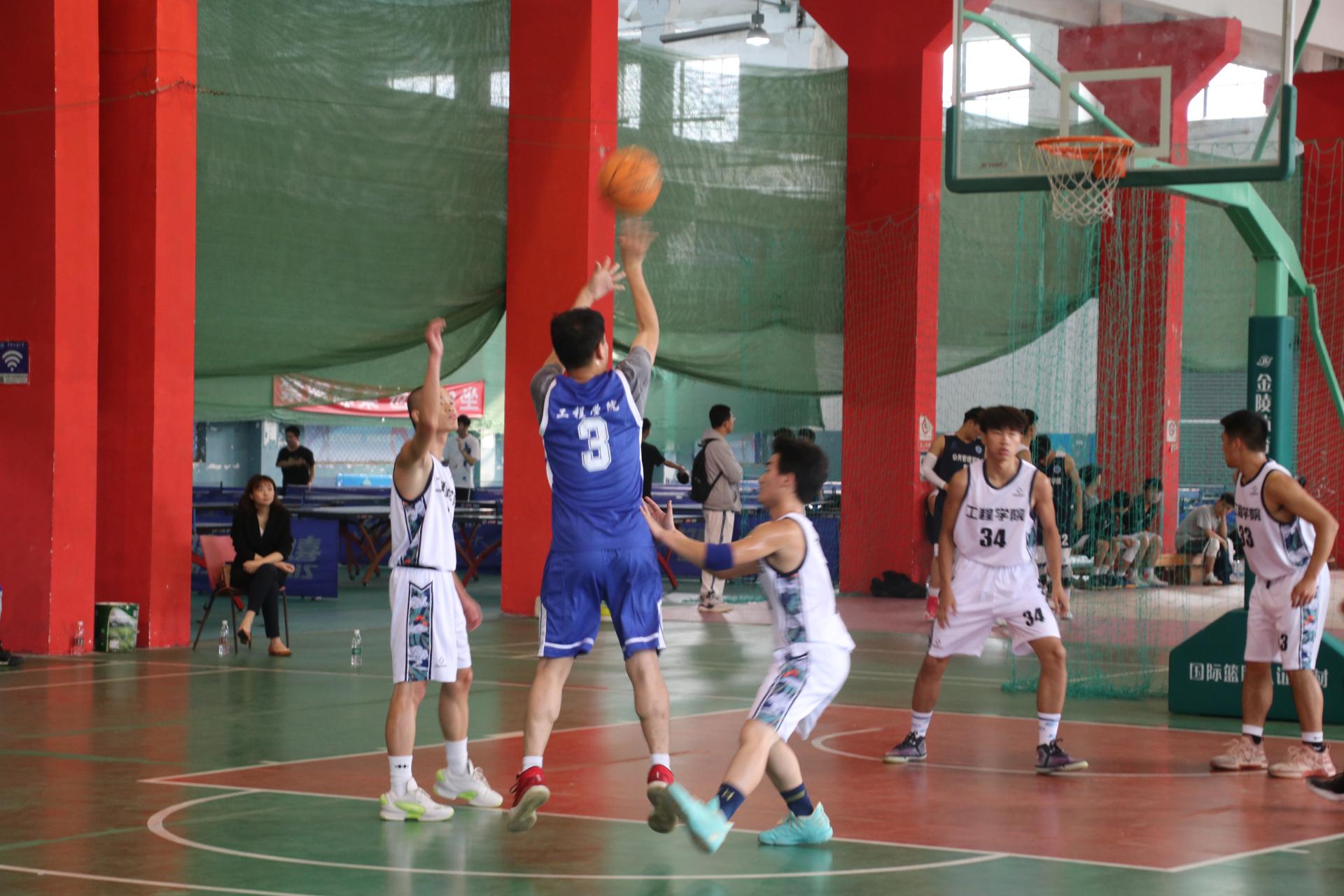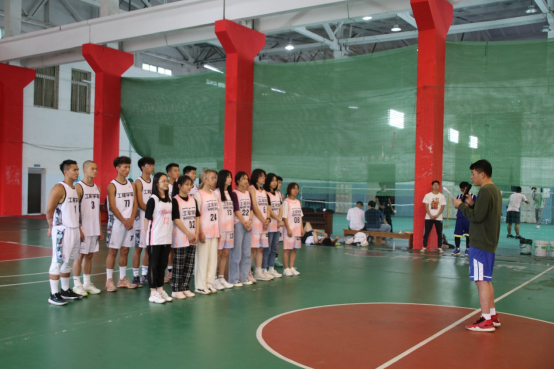 最后,师生篮球赛正式开始。主持人介绍首发队员,他们分别是教师队的陈胜、郑罗斌、高晓东、程旬和张伟,学生队的杨明、代钊恺、阿依巴特、王俊超以及熊秋阳。随即,双方进行了紧张激烈的角逐,最终学生篮球队以70:68的比分获胜。