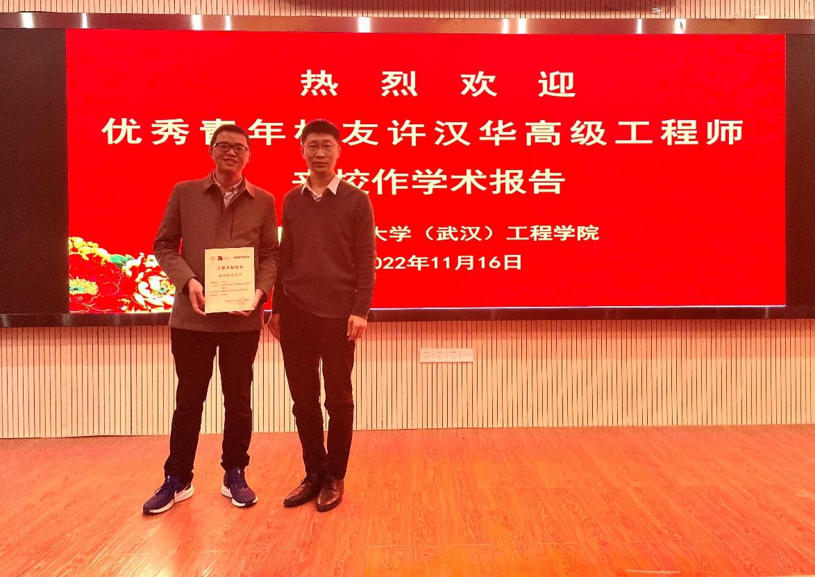 邹俊鹏特任教授对报告进行了总结发言,向许汉华高级工程师颁发了日本av中文字幕 (武汉)70周年校庆系列学术活动工程文化论坛特邀报告证书,并合影留念。