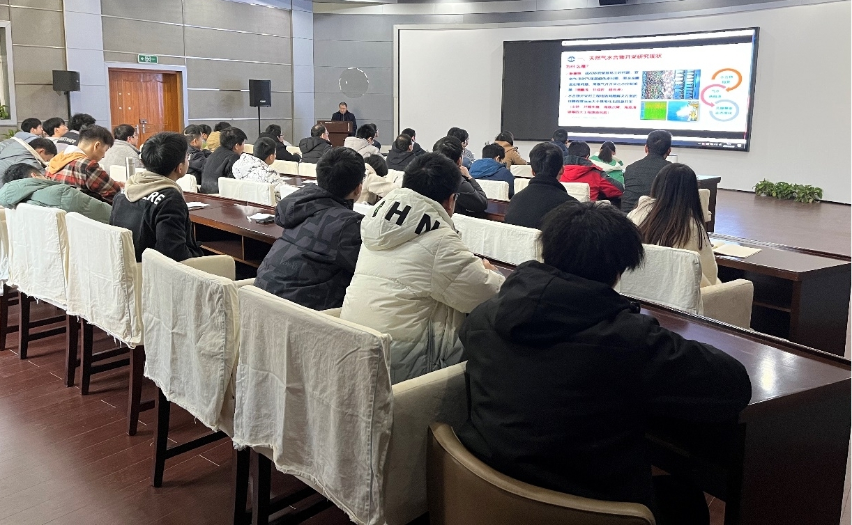 吴能友研究员作了题为“海洋天然气水合物开采研究:发展方向和展望”的精彩报告。报告详细介绍了当前国内外水合物试采研究现状,提出了天然气水合物开采基础研究和工程技术发展方向,并探讨了天然气水合物产业化发展前景和推进措施。最后,吴能友研究员还结合自己的最新研究内容,讲述了水合物法二氧化碳封存优势、存在的关键科学和技术问题及主要研究方向,并勉励与会同学一起加入水合物研究。