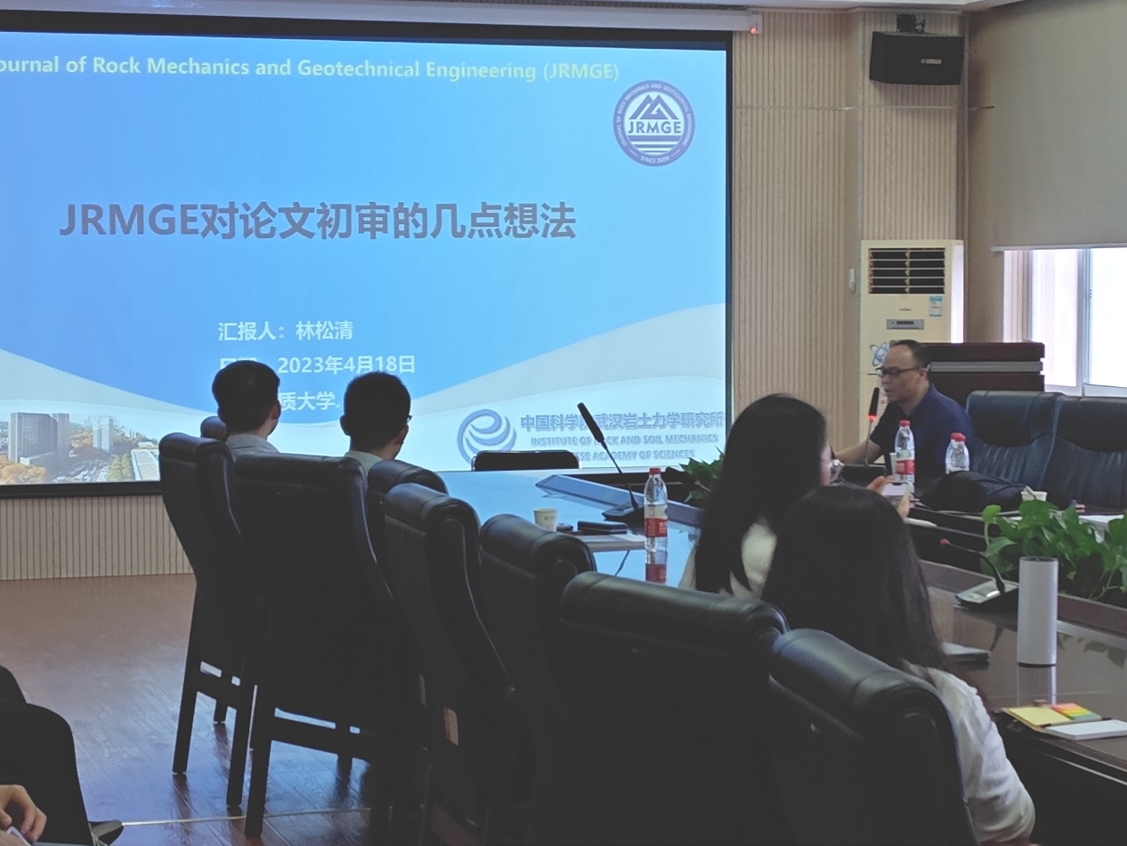 林松清社长首先简要介绍了期刊Journal of Rock Mechanics and Geotechnical Engineering的创刊历史、办刊宗旨、学术影响力、办刊团队以及出版和传播能力等。然后对投稿到该期刊的学术论文的编辑部初审一般性原则、初审主要内容做了详细的介绍。编辑部初审一般性原则包括是否符合期刊办刊宗旨、是否存在学术不端行为、是否已有类似论文出版、科研记录过程是否完整且严谨、语言表述及格式是否符合要求等,初审主要内容涵盖标题、摘要、引言、正文、结论、参考文献和数据图表统计方法等。林社长以该期刊为例对初审拒稿率进行了剖析,并比较了近5年该期刊的拒稿率。