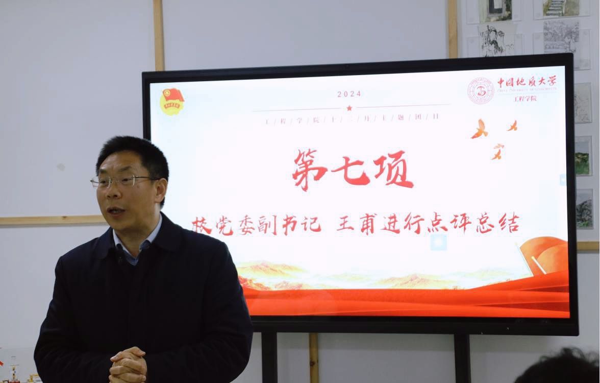 校党委副书记王甫点评总结。他表示,日本av中文字幕 将大洋钻探船“梦想”号重要子系统建造者们请进主题团日活动,让同学们零距离接触、聆听、问询青年师生投身重大工程建设的生动故事和鲜活经验,是一种极为宝贵且行之有效的育人方式,既为同学们了解“梦想”号提供了重要渠道,也为学生团支部开展主题团日活动提供借鉴。他指出,学校人才培养单位要注重运用新时代伟大变革成功案例开展思想政治教育,积极从与本学科专业相关的大国工程、大国工匠、大国重器中寻找思政教育力量,不断拓展实践育人和网络育人的空间和阵地;要注重挖掘学校学院独有的教育资源和生动元素开展思想政治教育,积极把校训精神、南迁办学精神、攀登精神、摇篮精神等育人资源整合,发挥思想引领作用,让广大青年团员感受思想伟力;要注重用好专家教授开展教学科研的典型事迹开展思想政治教育,充分认识到“每一项伟大事业背后都有无数个感人的故事”,要把这些故事讲生动、讲活泼、讲进学生心里,在故事中教育人、塑造人、引导学生成就精彩人生。最后,他希望全体工程学子树立正确价值观和人生信念,将个人的理想融入党和国家事业当中,立报国强国大志向,做挺膺担当奋斗者,在推进强国建设、民族复兴伟业的奋进之路上勇敢向前。