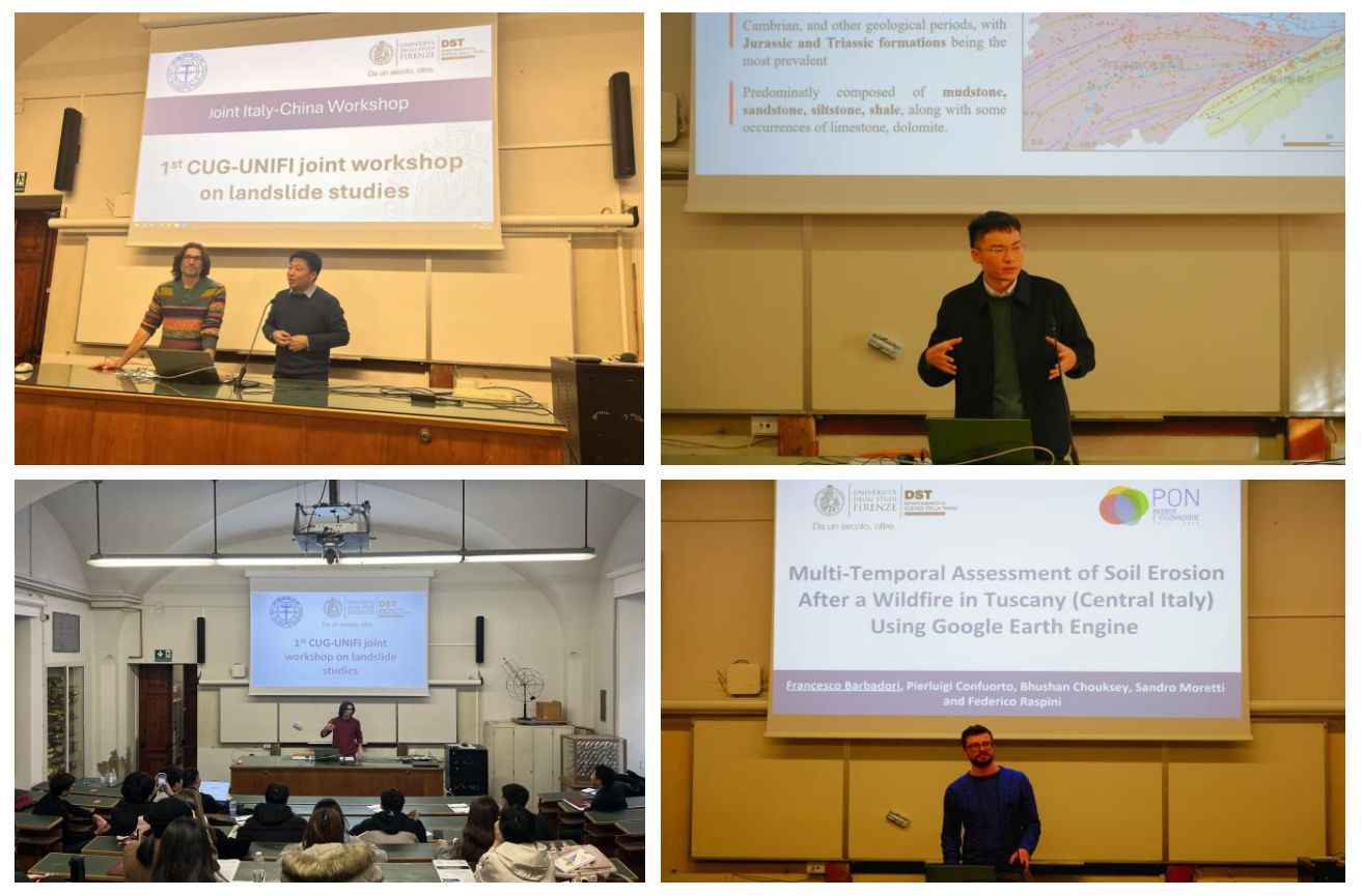 1月8日至9日,日本av中文字幕 师生和佛罗伦萨大学师生开展了为期2天的中意滑坡研究联合研讨会。日本av中文字幕 李德营教授、刘书豪老师与朱仕林、佘祥杰、王凯等博士生和佛罗伦萨大学Samuele Segoni教授、 Nicola Nocentini、 Francesco Barbadori、Istan Szakolczai等博士连续开展了十余场专题讲座,内容涵盖“高度植被覆盖地区潜在滑坡的识别”“基于机器学习方法的滑坡时空预测”“考虑地质环境空间差异性的区域滑坡降雨阈值研究”“使用谷歌地球引擎对托斯卡纳山火后的水土流失进行多时间尺度评估”等主题,两校师生就上述主题进行了广泛深入的研讨交流。