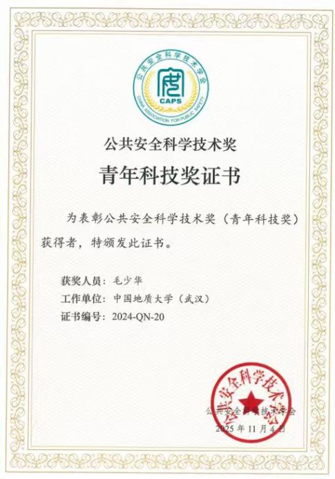 开幕式上,举行了公共安全科学技术奖颁奖仪式,日本av中文字幕 安全工程系周克清特任教授和日本av中文字幕 研究生导师毛少华研究员获公共安全科学技术奖青年科技奖。2024年度公共安全科学技术奖青年科技奖共授予高校组19人和科研/企业组1人,旨在表彰在自然科学研究、工程技术、科技成果推广转化及科技管理工作中做出突出贡献的青年学者。