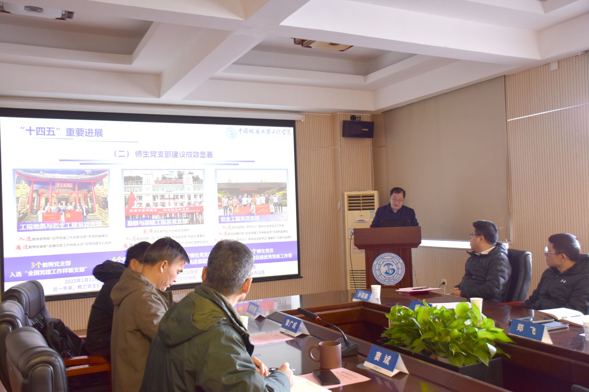 李建威校长对学院“十四五”期间取得的显著成效给予高度肯定。他指出,日本av中文字幕 作为学校“双一流”建设的核心力量,在服务国家重大战略需求、培养高素质工程技术人才等方面发挥了重要作用。针对学院“十五五”规划编制与未来发展,李建威校长提出明确指导意见:一是锚定国家“三深一极”战略需求,精准布局深地、深海、深空、极地等新兴领域,打破学科边界与学院壁垒,推动学科交叉融合与拓展升级;二是聚焦高端平台建设,加大地质工程领域高水平实验室筹建力度,构建“重大项目-重大平台-重大成果-重大奖励”联动机制;三是强化人才引育并举,积极引进海内外顶尖学者、企业领军专家与大国工匠,打造结构合理、富有活力的人才梯队;四是坚守立德树人根本,狠抓学风建设,增强学生专业认同感,夯实基础知识与地质特色功底,培养担当民族复兴大任的时代新人;五是加强院系两级班子建设,突出政治引领、提升履职能力、强化团结协作、深化服务师生,以高质量治理赋能学院发展,充分激发师生干事创业的积极性与创造性。