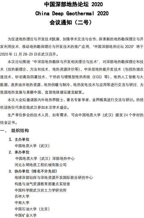 【11月28-29日】中国深部地热论坛2020会议通知(二号通知)