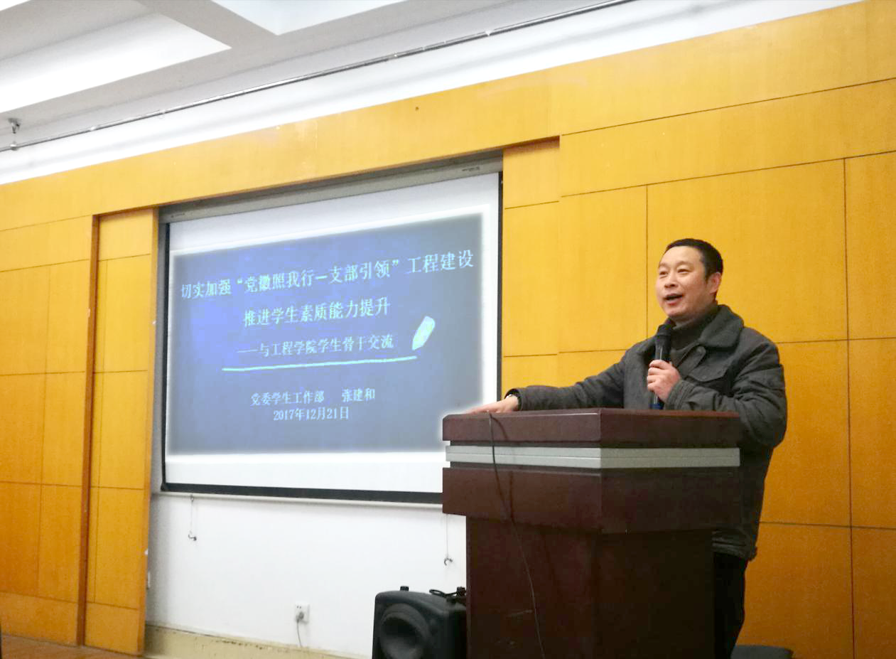 张建和为本科生学员们讲解推进“党徽照我行——支部引领工程”的方法与途径。他提出,党员骨干们在完成时支部引领工程时,要做到“做我所写,验我所做,改我所错”。党员们要发挥先锋模范带头作用,始终围绕服务同学、关心同学来做。