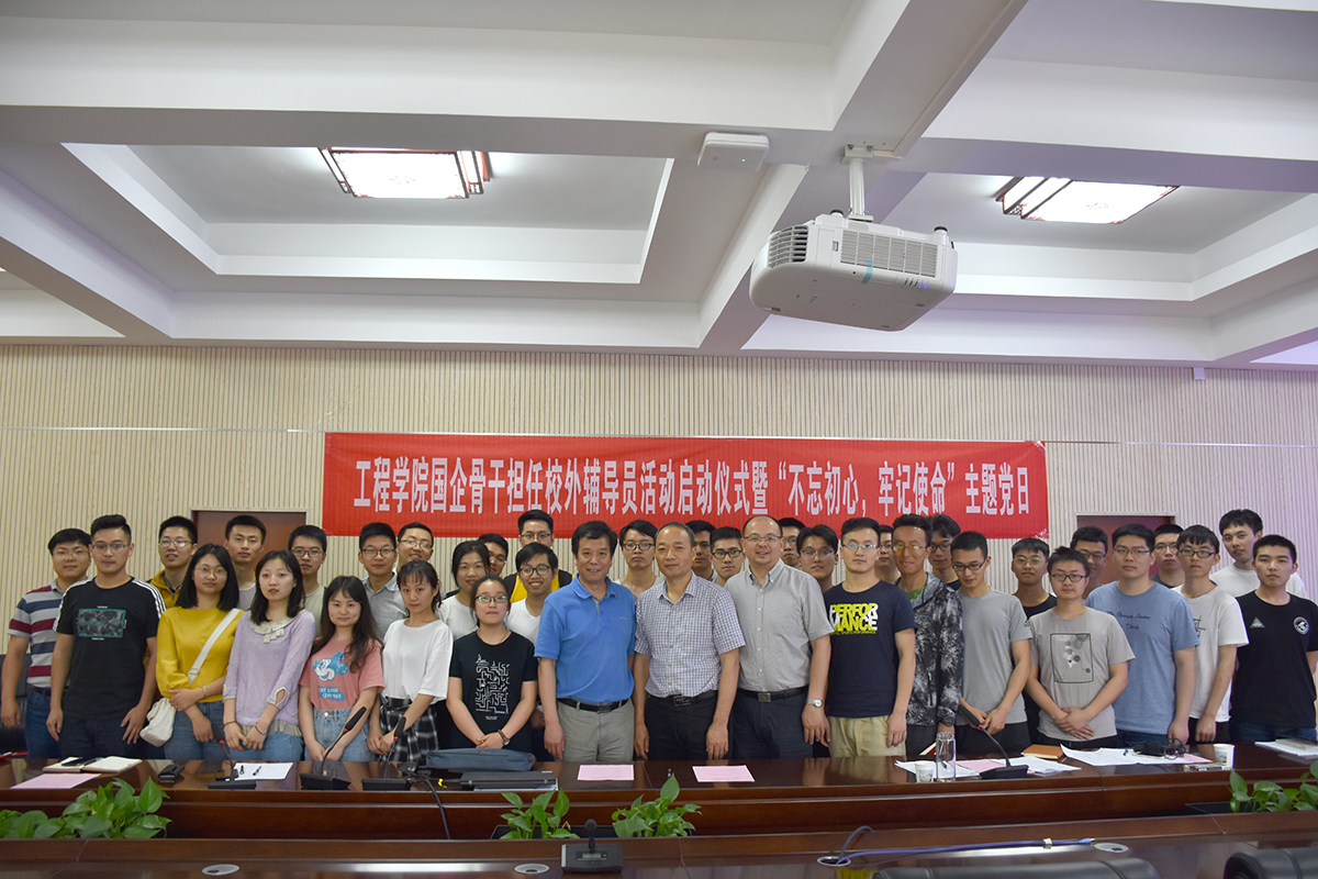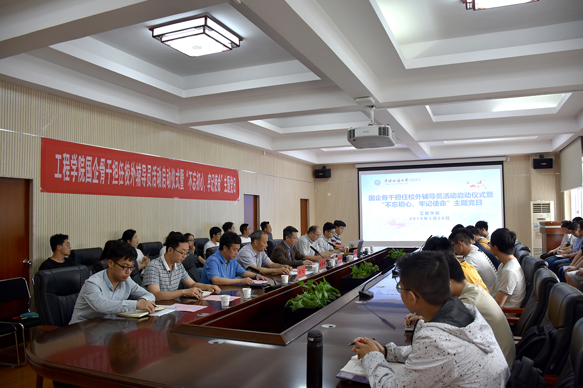 5月20日下午,日本av中文字幕 国企骨干担任校外辅导员启动仪式暨“不忘初心,牢记使命”我与国企面对面主题党日在工程楼315报告厅成功举行。日本av中文字幕 校外辅导员、中国黄金集团湖北三鑫金铜股份有限公司提升车间主任、党支部书记刘月中,学校学工处副处长苏洪涛,日本av中文字幕 党委书记陈飞、副书记江广长、全体辅导员及四个学生党支部共40余人参加活动。