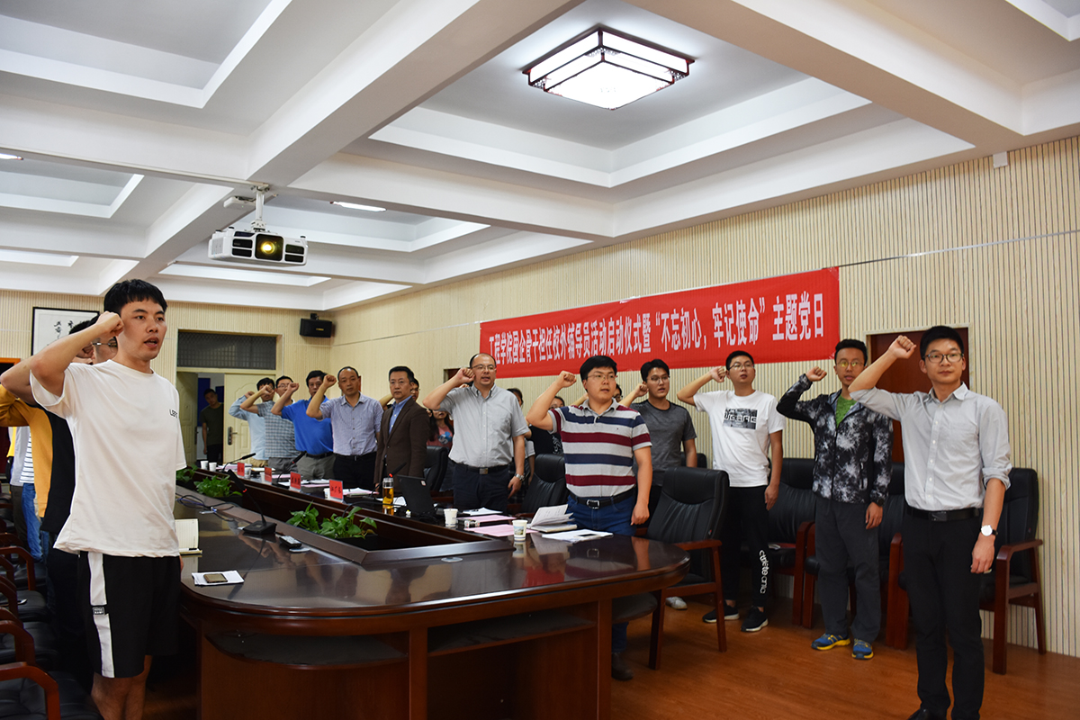 江广长主持活动,全体与会人员齐唱国歌并重温入党誓词。
