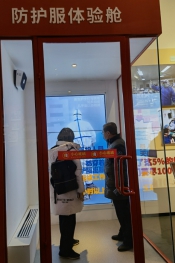 展区内综合运用互联网+、VR、AR等手段,设置了“感受防护服”“为烈士鲜花”等互动环节,大家在防护服体验仓体验医护人员在防护状态下工作的艰辛,并为抗疫英勇献身的英烈献花。展厅真实再现了解放军战士逆行出征,全国各地医疗队“白衣执甲”支援武汉以及各行业的志愿者无私奉献的场景。他们在生活中都是普通人,但穿上工作服,都化身为钢铁战士。“没有从天而降的英雄,只有挺身而出的凡人”,这是党员们发出的最诚挚的感慨。