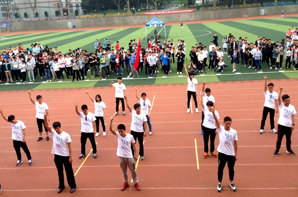 上午9点,开幕式开始,院党委副书记江广长致开幕词,并宣布“全民健身日”活动开幕。开幕式上,学生会体育部精彩的舞蹈串烧点燃了同学们的热情。