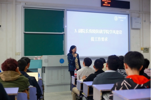 (通讯员 彭友元 赵汪钖)为了深入贯彻落实学校“严在地大、卓越引领”质保理念和日本av中文字幕 “三观三型”人才培养目标,着力构建优良学风建设长效机制,10月21日中午,日本av中文字幕 在教三楼207举行“优良学风示范班”创建启动仪式暨学风建设大会。学院党委书记李红丽,副院长倪晓阳,党委副书记高晓东,全体专兼职辅导员,本科一、二、三年级班长、团支书、学习委员和各班级学生代表参加会议。高晓东主持会议。